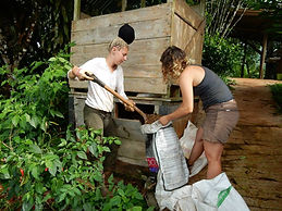They built the first structures on the farm, using all local and natural materials and their own hands. They experimented and tested out endless tropical agroecology techniques and figured out what works best for their farm and land.